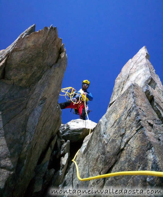 La discesa dal Gemello avviene con 1 o 2 doppie da massimo 30 m, a