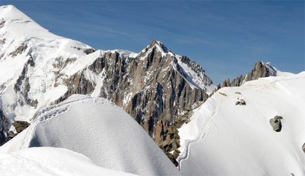 la cresta di Rochefort; sulla sinistra l'Aiguille de Rochefort |