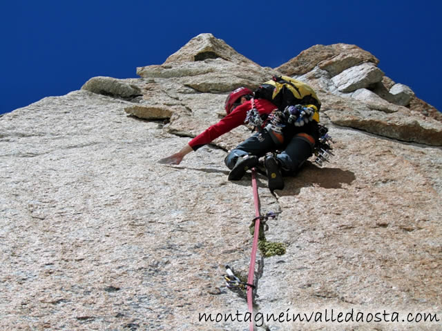 La Bonatti prosegue ancora a sinistra per poi prendere una fessura strapiombante.