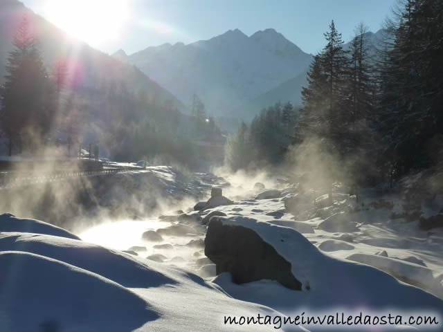 | vapori surreali avvolgono il torrente per effetto delle basse temperature |