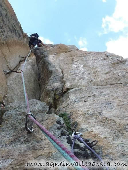Ricordo che il quarto tiro è in comune con la Ottoz; se invece si decide di attraversare subito a destra, c'è una variante