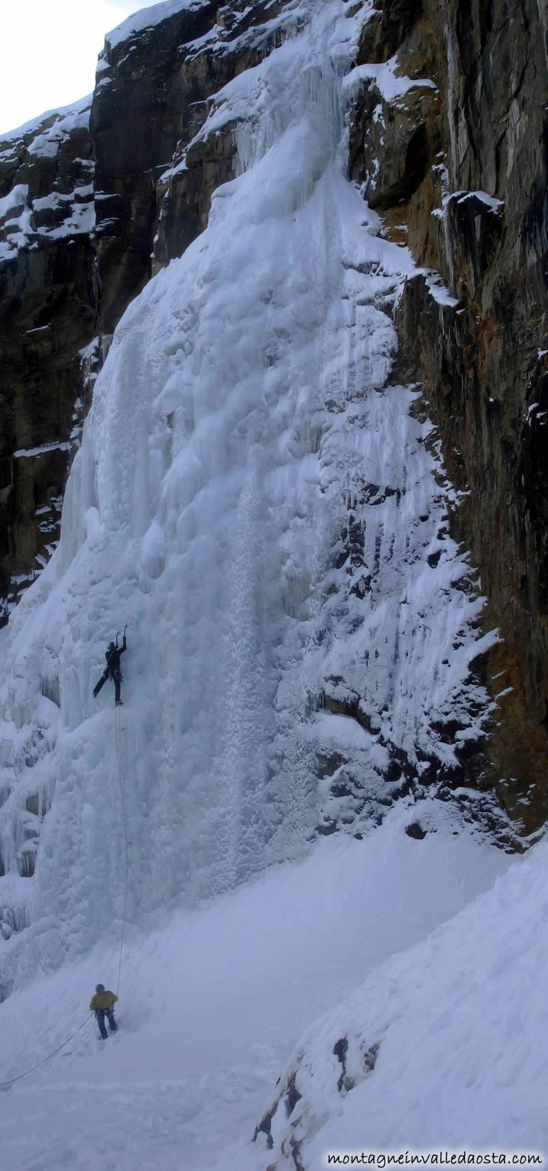 un muro a 85° e poi un rIgonfiamento sulla sinistra (70°) e arrivare in sosta. Proseguire sino alla base di un piccolo