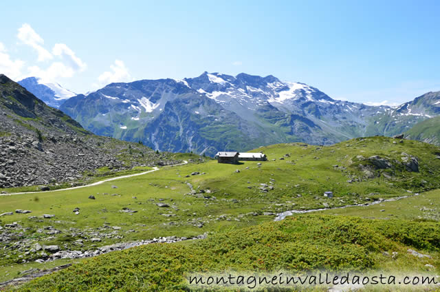 Da Valgrisenche si percorre la strada asfaltata che sale sulla destra orografica del lago di Beauregard fino
